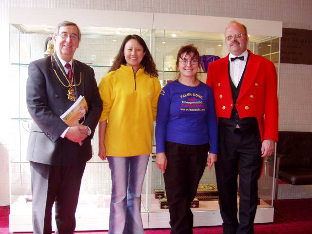 学员们随后继续前往拜访英佛尼斯市市长。因为没有事先预约,所以他们临时来到市长办公室,希望有机会与他谈话。一位男士在接待室会见他们,并询问为什么要见市长。学员们告诉他有关这场在中国针对以真善忍原则生活的人们所進行的群体灭绝残酷运动,然后这位男士表明他就是市长,并表达他对法轮功的强烈支持。他在听取了有关江××和其追随者所犯下的反人类罪行后,深表关注。当市长听到年轻的母亲王丽萱和她七个月大的婴儿孟昊,因为修炼法轮功而于2000年在北京团河调遣处被谋杀时,深受触动。法医检查:王丽萱颈椎已断,坐骨断裂,头部凹陷,腰部留有一针头。孟昊脚脖有两道深深的伤痕,头部有两块紫斑,鼻子有血,据分析:可能是将手铐铐在孟昊的脚脖子上倒悬所致。这对无辜的母子只是在这场迫害中被摧毁的无数家庭之一。