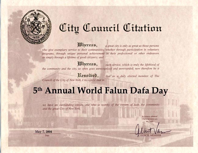 第5年度世界法轮大法日我们拥有一位杰出的公民,他是一位值得社区和大纽约市都给予尊敬的人。