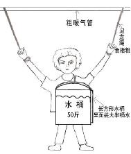 后恶警又用车把我带到很远的一个地方進行迫害。它们拿来专门在渔船上捕鱼用的那种又粗又硬的尼龙绳子,把绳子挂在屋顶的暖气管子上,把我的双手绑上吊了起来,往脸上泼水,又弄来两个装满水的塑料桶,桶是长方形的,一个桶大约能装40-50斤水。它们说:“看你是个女的,给你弄大半桶。”前几天给A(另一同修)装了满满两桶水。它们找来了一个长布条,两头系在水桶的把上,把两只装了水的水桶挂在了我的肩膀上,放了一会,恶警看没怎么样,就把系桶的绳用水打湿,本来天气很热就出了汗,这样一来绳子就贴在肉皮上,两个恶人一个人拉一个水桶,一个在前一个在后,就这样拉来拉去没几下肩膀和脖子上的皮肤就磨破了。两个桶吊在身上又累又疼,脖子上的筋都勒得生疼的,过了一会手就开始发胀。有一恶警很下流,用手挠我的腋下。