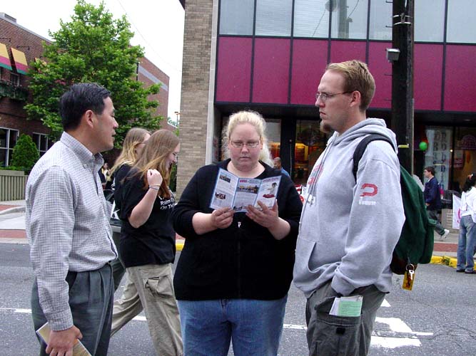 加拿大蒙特利尔学员在街市上讲真象(图)