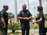 一大早,布鲁斯维克市市长就来到法轮功学员的活动地点,参观了法轮功学员摆放介绍法轮功在中国受迫害的图片、刑具等。他看完后,就立即去了市广播电台的脱口秀节目向人们介绍法轮功学员的反酷刑展。市长介绍之后,陆续的就有一些市政府的官员,包括市行政管理长、市府律师、市府公共关系部门总管、警官、警察等来到法轮功学员的活动地点参观。市长之后再次来到展示现场,与法轮功学员交谈并合影,还带着几位官员同来。市长表示他自己也需要炼功以缓解工作压力。