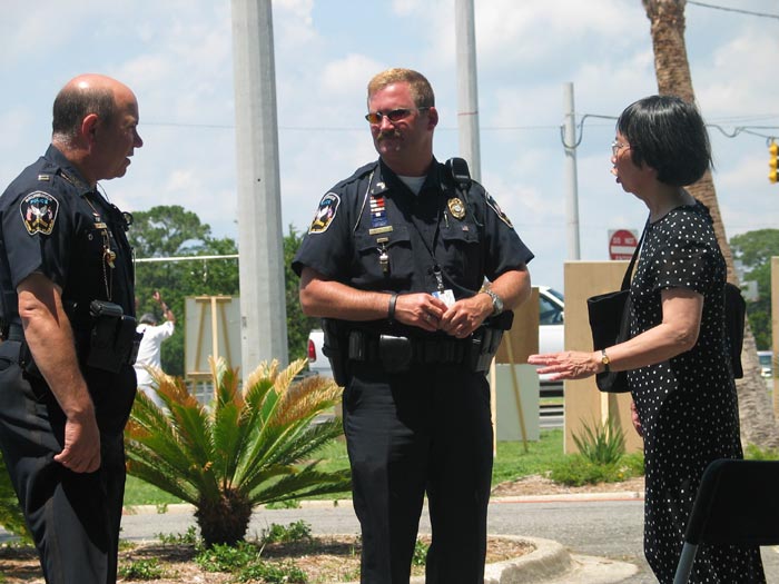 市府官员们通过参观反酷刑展和与学员们交谈,更深入的了解了法轮功在中国受迫害的情况,他们纷纷感谢法轮功学员给他们城市带来了法轮功的讯息,并表示他们看到真人演示迫害场面后心里受到的强烈震撼。一位负责公共信息的警官说他当天晚上会在当地电视的脱口秀节目中向媒体、民众们介绍法轮功学员的反酷刑展,并鼓励他们来参观。这位警官介绍的其他市府官员、警官、警察以及他的太太后来都纷纷来参观。一位警察看到酷刑场面,了解到中国大陆恶警们的嚣张气焰,觉得不可思议,表示非常失望,对法轮功学员说:“我们会给中国的警察写信,让他们停止这种野蛮的行为,我们会全力帮助你们的正义之举。”