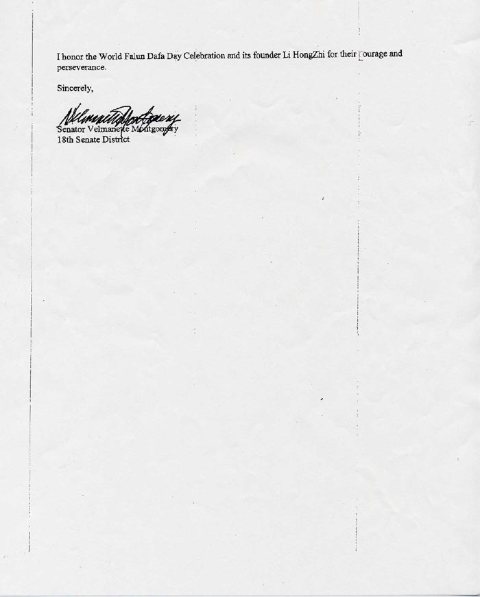 我谨向世界法轮大法日的庆祝活动与创始人李洪志先生表达敬意,并敬佩他们的勇气和毅力。
