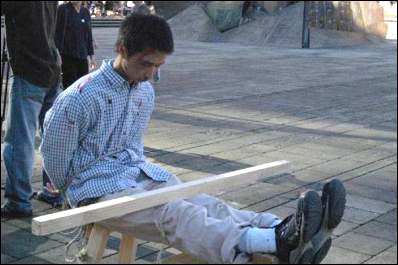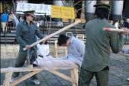 新西兰独家新闻报(Scoop)6月29日报道,“铁笼”、“老虎凳”、“死人床”只是法轮功学员上周末在奥克兰的奥蒂广场(Aotea square)展出的中国警察的残酷刑具中很少的几种。反酷刑展览是为了支持“联合国支持酷刑受害者国际日。”展览形像地演示了共产主义政权为迫使人们放弃修炼法轮功、及真、善、忍,所采用的虐待方式。