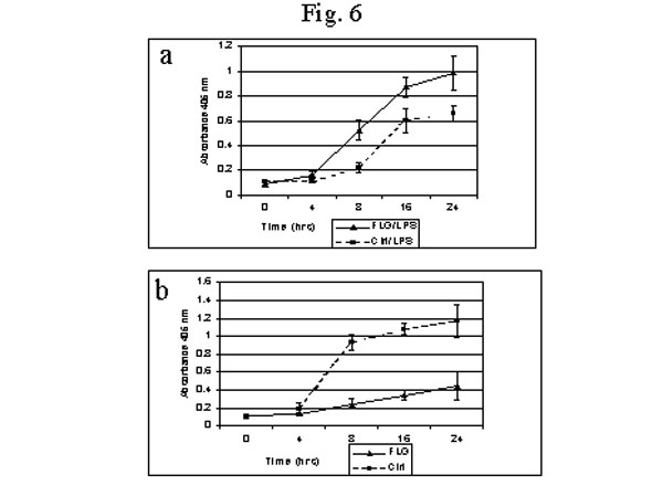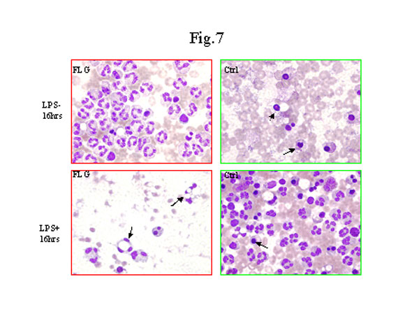 然而,免疫反应就象一柄双刃剑。当它持续反应时,过度的免疫系统的激活就可能对主体有害[58]。那么修炼人的免疫系统是如何解决这一难题的呢?我们发现了另一种超常的调控,BCl-2和BCl-XL,这些调控细胞死亡的基因表现为显著地下调控(图5)。 BCl-2和BCl-XL属于BCl-2家族的抗细胞死亡成员[59,60]。这些抗细胞死亡基因的减少可能使修炼人的嗜中性白血球在受聚酯糖(lipopolysaccharide, LPS) 时加速死亡(图6a和图7)。LPS是一种炎症促進剂,能够刺激细胞来表达细胞各种各样的炎症因子[60]。很多慢性炎症损伤与受刺激的嗜中性白血球的死亡延迟有关[61]。而诱导细胞死亡却有利于控制炎症 [62]。 另外,细胞死亡诱发的基因显著地却反向上调控,其中包括肿瘤坏死因子受体-1 相关蛋白(TNF-receptor-1 associatedprotein), BH3 相互作用基团死亡促進因子(BH3 interacting domain death agonist), 白细胞介素-1 转换酶(Interleukin-1 convertase), 和白细胞介素-1转换酶2 ( Interleukine-1-converting enzyme2)。这些促進细胞死亡的因子的增加可能是修炼人受刺激的细胞加速死亡的另一个因素(图5)。