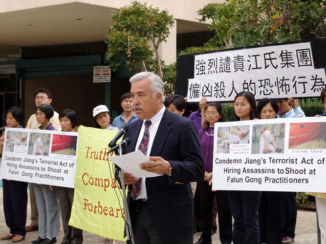 加州大学洛杉矶分校 (UCLA)教授、法轮功学员吴英年在发言中指出,中国有句古话:“天欲其亡,必令其狂”。江氏集团丧心病狂的雇凶杀人恰恰暴露了其国家恐怖主义的真面目,同时也反映了江泽民一伙对于海外的起诉极其恐惧,因为海外的起诉断绝了他们将来在中国大陆被清算时逃到海外的退路。