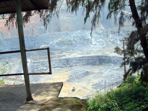![]() 这是走近了看,可以清楚看见地上汽车的印痕和矿石渣; | ![]() 这就是大坑前的那个门。 |