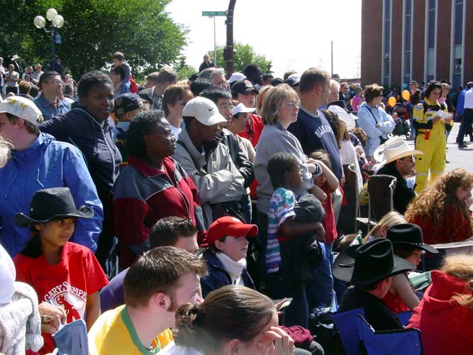 与往年一样,今年的牛仔节以一个“世界级”的盛大游行作为开幕式。今年的游行,有150个队伍,上午9点开始,至11点半结束,历时2个半小时。据估计,在市中心沿街4.5公里的游行路线上,有来自世界各地的现场观众35万人,多家电视台進行了实况转播,全球将有电视观众3500多万。