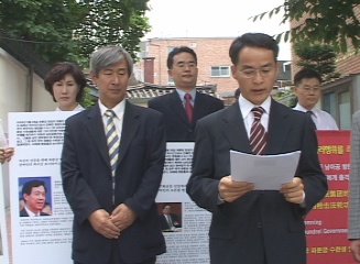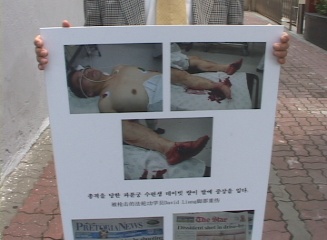 【明慧网2004年7月12日】韩国法轮大法学员在2004年6月30日就南非枪击案向驻韩中国大使递交声明书后,接着7月10日中午12时,在驻韩大使馆前,发表声明并召开记者招待会,强烈谴责江氏集团在南非雇凶杀人的恐怖主义行径。