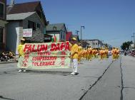 来自威斯康星州,伊州和明尼苏达州的50余名法轮功学员参加了本次游行,学员们组成的炼功方阵,花车上的功法展示,仙女荷花舞蹈方阵、腰鼓队和印有“法轮大法”“真善忍”的横幅,让市民们频频鼓掌并向学员们致敬。尤其是功法展示告一段落后,有些市民甚至站起来欢呼,有的还向街道两旁发资料的学员们说:“我们支持法轮功!”法轮功学员的方阵再一次给密尔沃基市市民留下了美好的印象。