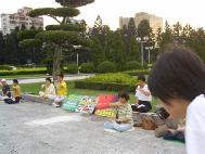 ![]() 醒目的看板吸引民众 | ![]() 洪法炼功讲真象 | ![]() 明慧学校教功 |