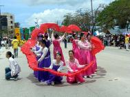 ![]() 学员亲手装饰的法船 | ![]() 游行队伍 |