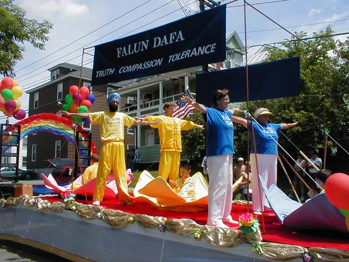 来自新英格兰地区北部的法轮功学员齐心协力,为今年的游行带来了成功的表演。那天夏日炎炎,成千上万的民众沿街观看游行。
