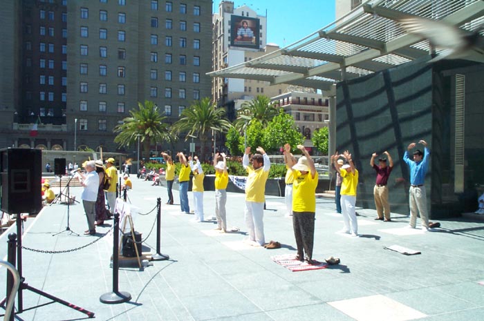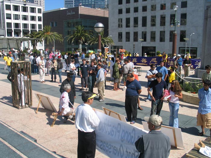 值得一提的是,有一位叫Bob的西方人,是在三个星期前,当湾区学员在加州首府举行酷刑展时,他觉得能量场很好,就学了功,还参加了两整天的活动。这次他跟随加州首府的学员,驱车两个半小时来到旧金山参加活动,并积极的派发真象资料和讲真象。他表示很自豪能参加活动。
