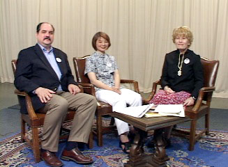 主持人艾丽亚•阿得勒介绍她是去年夏天在芝加哥市中心看到有法轮功学员在发传单,而从传单中她得知美国公民李祥春在中国被关押事件,从而吸引了她的注意,并最后促成了这次访谈节目。