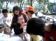 有许多民众看到照片中澳洲学员梁大卫的伤势时,十分震惊,在学员的解说后,立即拿笔签名谴责江氏集团恐怖主义行径。也有的学生看到照片开始时说“好可怕!”但在知道真象后,也踊跃的签下正义的支持。也有民众本来不知道是怎么回事,赶着路要走,但是学员耐心的在身后讲起真象,对方就停下脚步,回头聆听,在清楚了江氏集团的恐怖主义及法轮功受迫害的情况后,立刻签名,短短两个钟头横幅上就签满了众多民众的支持,世人已渐渐看清江氏流氓集团的真面目,越来越多人反对江氏集团的恶行,越了解法轮功的人越能感受法轮功的美好。