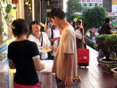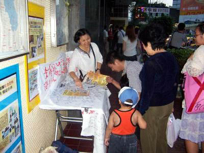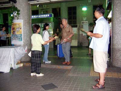 ![]() 一个签名就是一份正义的力量 | ![]() 民众主动签名表达支持维护人权 | ![]() 把真象福音传送给進出车站的旅客 |