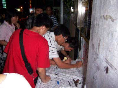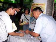![]() 签名支持人权,反对江氏集团暴行 | ![]() 仔细聆听签名的原委和法轮功真象的年轻人 | ![]() 一位谦说自己书读不多的民众也签名支持反迫害 |