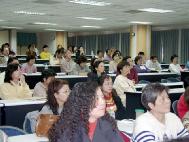 寒假时间较短,本次研习课程只排定两天,安排的内容有4位专家学者分享修炼法轮功的心得、大团体教五套功法、及播放法轮功真象影片。虽然短短两天的研习,报名参加的教职员工约160多位,四位学者分享他们的修炼故事,因他们的诚恳、智慧、幽默且思考逻辑清晰、让参加研习学员深受感动,对法轮大法留下很好的印象。四个半天场场坐满,并不时可以看到大家聚精会神的表情,整个场面愉悦祥和;而看到反映中国大陆无理残暴打压法轮功的影片,参加研习的学员有的还流下眼泪说他今天才明白法轮功是好的,中国大陆媒体在说谎话。