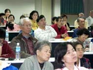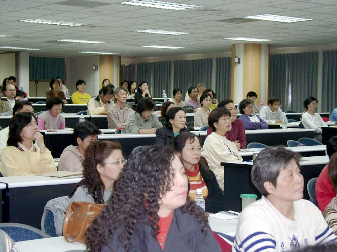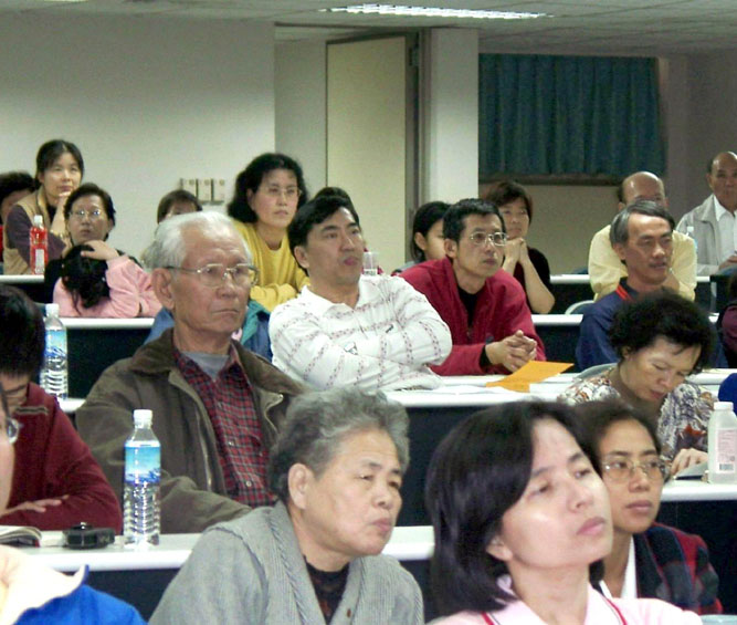 国立中兴大学刘正义教授谈“身心灵健康DIY(Do It Yourself亲身实践)”,提及他修炼前后身心巨大的变化。他幽默自然,以诚恳又冷静、坚定的语气讲他修炼中精彩的小故事,讲这部法对他生命是何等的重要。刘教授一而再,再而三鼓励大家一定要珍惜这个缘,走進来修炼,并谈及中国大陆法轮功学员的处境,及大陆江氏集团对法轮功的造谣、抹黑。这个真象真是讲到学员心灵深处,有些新学员流下同情的眼泪,也终于明白法轮功是百分之百好的,他要告诉他的亲人。
