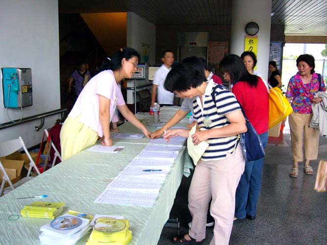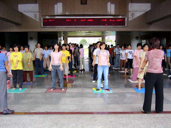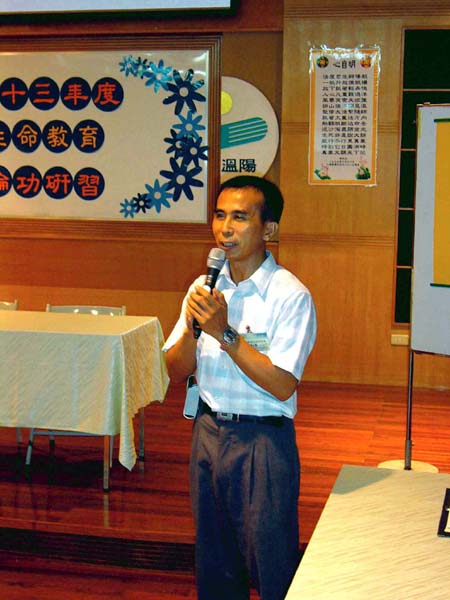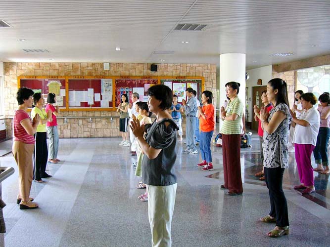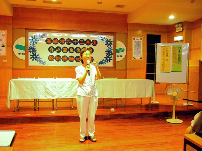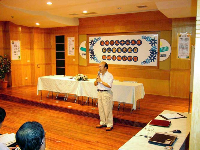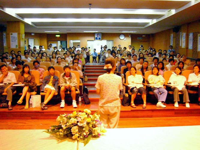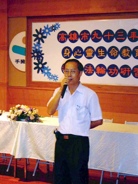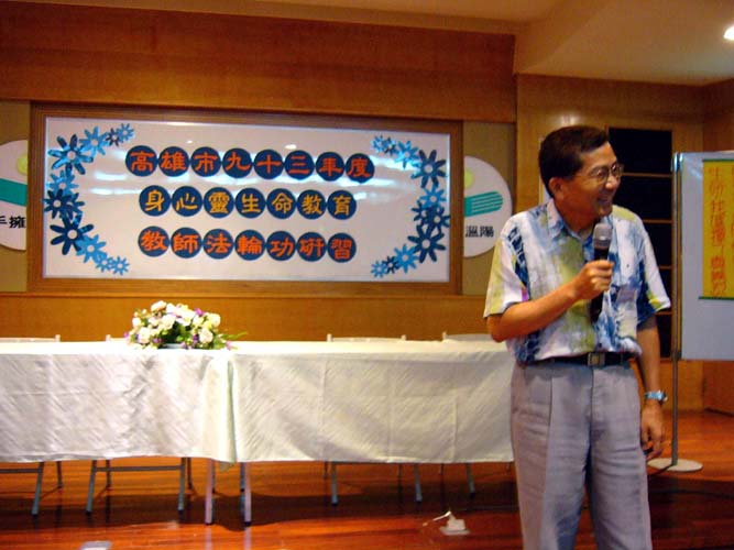 台湾在教育界服务的法轮功学员越来越多,大部分是透过每年寒暑假全省教师研习营得法,或是亲眼目睹学校中修炼法轮功的同事身心巨大的转变而想学炼。高雄市成功启智学校的两位法轮功同修也是参加了两次教师营,深受法轮功的益处,很想介绍给他们学校的校长、同事,希望能让更多的教师从大法中得到身心灵的健康。他们利用中午午休时间教刘校长五套功法,刘校长也很想進一步了解法轮功而促成这次教师研习营的因缘,在2004年7月5日~7月9日办理为期五天的研习。刘校长特别亲自送公文到教育局会见七科科长和教育局长,表达办理这次研习的重要性和意义,让很多教育界的教职员工能安心的请公假,又有研习学分来参加研习。