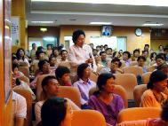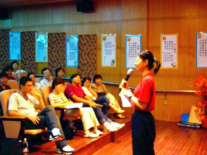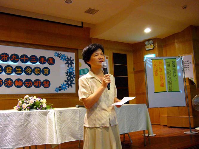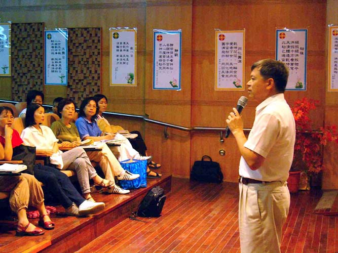 乐群国小许素香主任:两周前得知这个研习讯息,原抱著怀疑及迷惑的态度,如今透过研习已澄清对法轮功的误解且深知法轮大法的好。在这五天中,让我认清自己往后的方向。解开心中经常担忧的事----如何教养小孩,我第二天就帮小孩子报名参加高雄法轮功儿童夏令营。