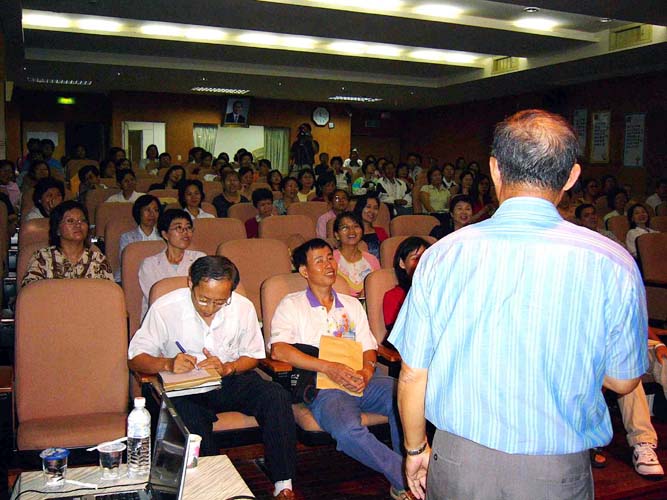 这次研习公文教育局一核准下来后,报名很快的超过了预定人数,结果我们就在会场后面加了四排椅子。每一次大法的活动都是透过很多学员合力完成,这次的研习也是如此,有的学员拟定研习计画及课程内容,有的分发报名表到每个学校、每个办公室,有的准备洪法研习材料,有的布置会场,专家学者们更不辞辛苦,南来北往搭飞机、搭火车到各个研习会场做修炼心得分享,有的负责教五套功法,有的照相录影,有的作纪录,有的整理活动报导。充分表现大法弟子整体协调配合的良好心性,大家就一份心─愿更多的有缘人能得法修炼進来,愿参加的人都能明白法轮功真象,愿台湾的校园因“真、善、忍”而成为一片净土。