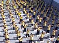 ![]() 上班前职工在学法 | ![]() 上班前职工在炼功 |