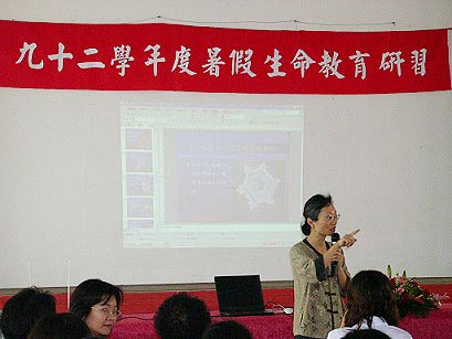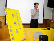 在研习中还安排播放了竹东镇大度国小叶芷芸老师和彰化市泰和国小陈金美老师学习法轮大法身心受益后,在学校班上推广法轮大法“真、善、忍”的法理,大受学生、家长欢迎的影片,一位学员在观赏完后心得分享写到:“社会这个大染缸,让这一代的父母忧心与日俱增,仅能明辨是非是不够的,看完《法轮功对学童的影响》这部影片,真犹如醍醐灌顶,在这炎热的夏日注入一身的清凉,我已知道下一步要为孩子努力些什么了。”