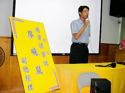 ![]() 大.纪.元;时报副社长潘信敏女士:媒体报导正面讯息净化人心 | ![]() 飞资得资讯副总经理廖晓岚先生:一位科技人的人文省思 |