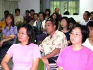 这次的研习除了播放李洪志先生的讲法之外,也邀请到了各行各业学有专精的法轮功学员:包括台大经济系教授张清溪、中央经济研究院吴惠林教授、台北市新和国小蔡守仁组长、建国高中周怡秀老师、中央气象局技士邓博元先生、东华大学经济系助理教授胡玉蕙女士、远东集团经理符文龙先生、大.纪.元;时报副社长潘信敏女士和飞资得资讯副总经理廖晓岚先生等,他们分别从经济、教育、西方绘画、水资源、媒体、资讯等各个角度切入,谈修炼与人类社会各领域的关系,也和大家分享了他们修炼法轮大法的体悟。