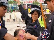 为抗议今年6月28日在南非发生的澳洲法轮功人士遭枪击事件,台湾法轮大法学会成员昨天在台中市火车站前广场,以中共武警公安强灌辣椒水残害法轮功成员等酷刑的行动剧,谴责中共的暴行。
