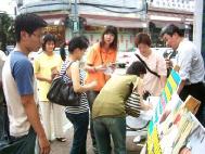 结束了莺歌陶瓷老街的征签活动之后,法轮功学员又到三峡市中心街道旁的店家,挨家挨户的主动拜访老板讲清真象,沿路有服饰店、美容院、卖面店家、电脑卖场、便利商店……。等,因为这些店家老板都熟识三峡法轮功学员,也都相信法轮功学员处世为人皆良善正直,明白真象后,纷纷签名支持伸张正义、保障人们信仰的自由和权利。