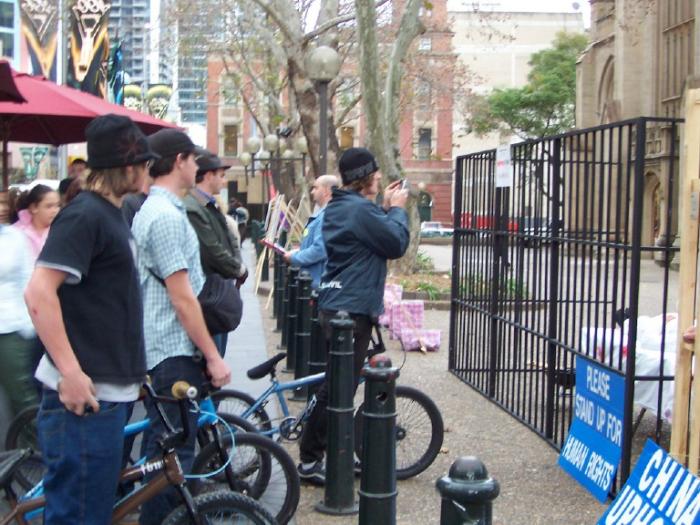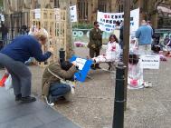 ![]() 行人观看酷刑照片 | ![]() 行人在签名 |