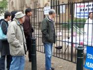 有位西人男士是个基督徒,他强烈的谴责江集团的恐怖主义暴行,并向学员表示他十分同情法轮功学员,他会为受迫害的法轮功学员祈祷祝福。