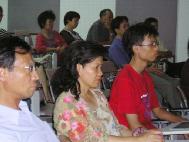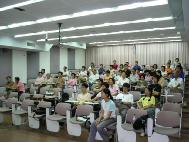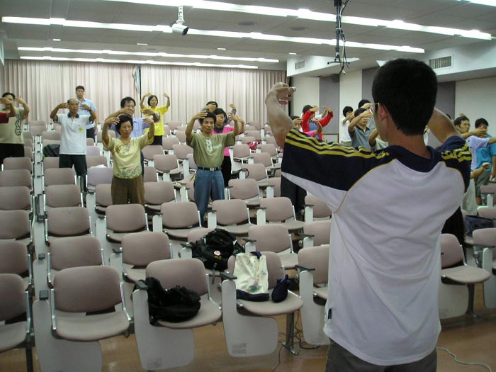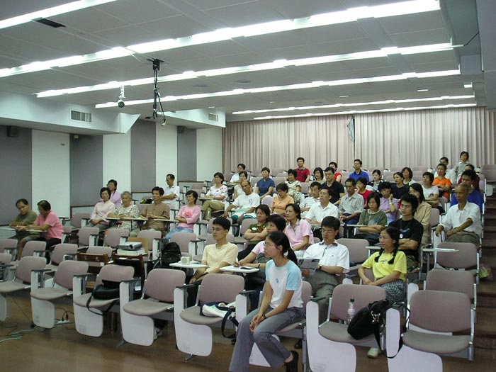![]() 胡乃文中医师分享心得,几乎是座无虚席,并且有民众在结束后仍继续和胡医师交流探讨。 | ![]() 台大经济系教授、法轮功学员张清溪分享修炼心得,并从自身的体验与身边熟识人修炼法轮功验证了法轮功中所说的内涵是实实在在的 |