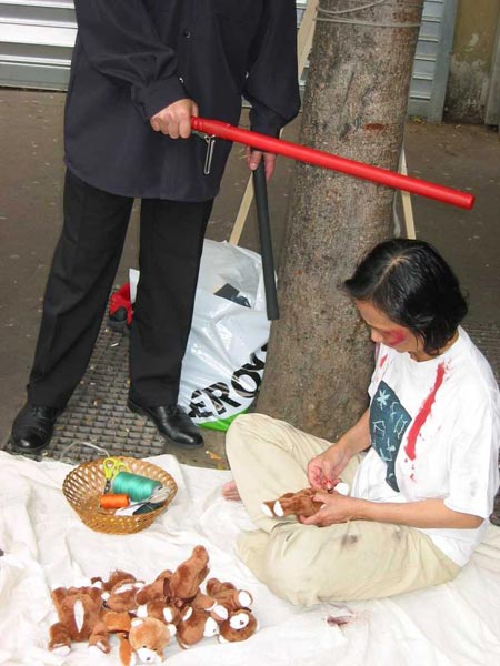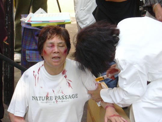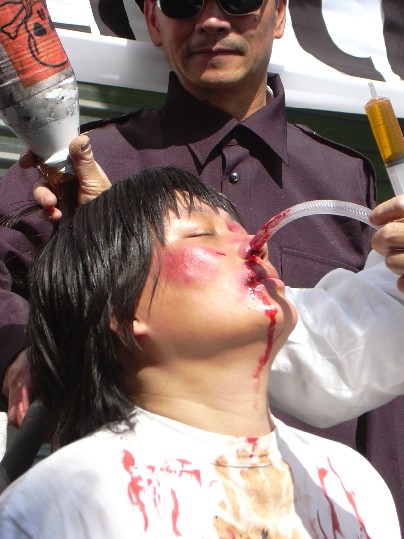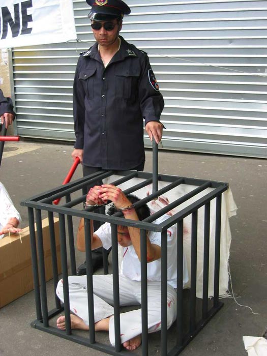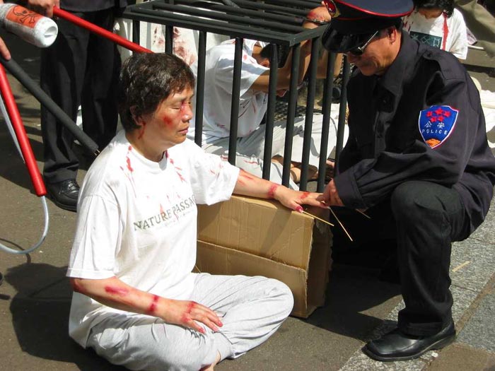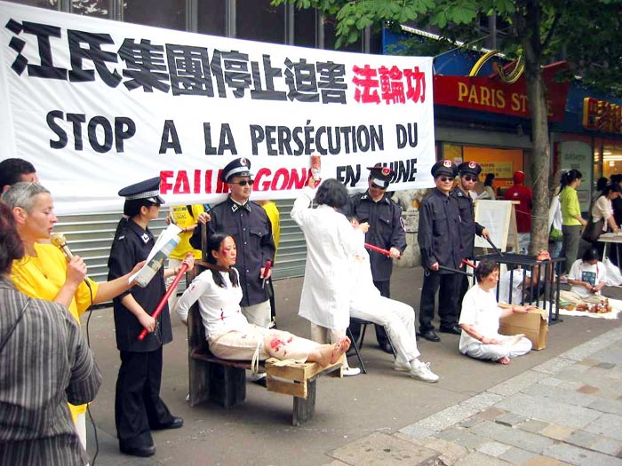 真人模拟酷刑深深地震撼了中、法民众,他们难以相信,在21世纪的今天的中国,在以“文化年”等手段刻意粉饰包装的后面,竟然由江××操纵着国家,对无辜善良的百姓犯下如此残暴的罪行。