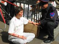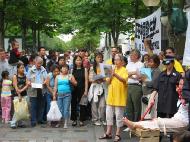 另一位男士看了“法办江××”的横幅后,起初对是否能将独裁者绳之以法表示怀疑。在学员的讲清真象和强大正念之下,他表示江××应象皮诺切特和奇奥塞司库一样受到惩罚,并祝学员一切顺利。