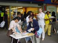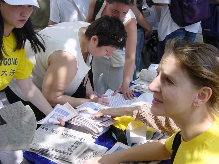 民众纷纷索取法轮大法资料、签名反对迫害法轮功。