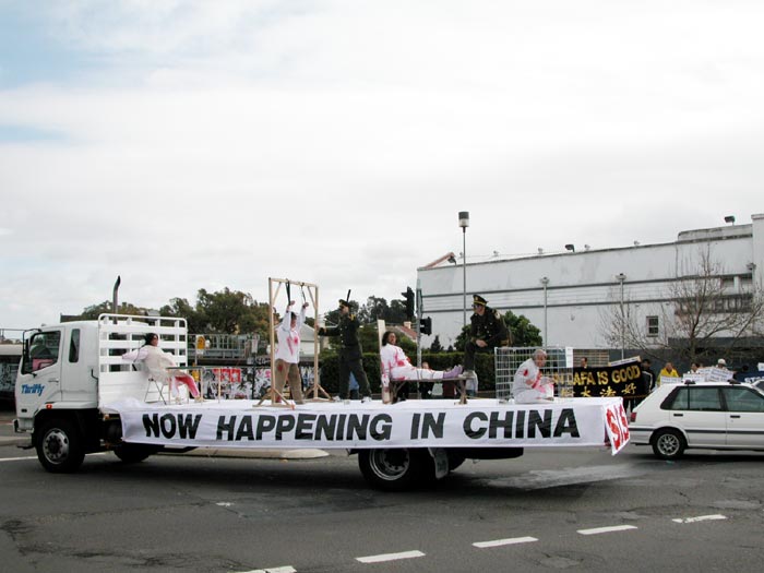 Ari是Newtown地区一个13岁的少年,他主动向学员要了真象资料并参加了集会的全过程。他向采访的记者表示,“今天的活动非常的好,很有意义。我憎恨江!它不应该对平和的法轮功学员使用卑鄙的手段来迫害”。他指了指卡车上的酷刑演示接着说:“法轮功学员不应受到这样的迫害,他们做的没有错。错的是江××,它才是应该受到审判和惩罚的!”