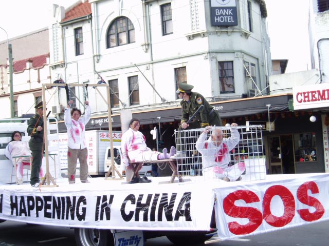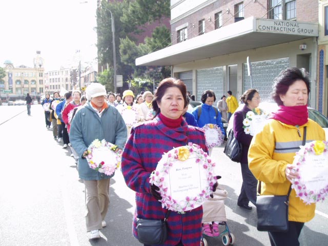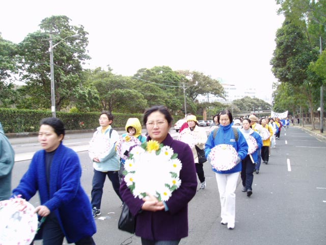 游行规模壮观,庄严肃穆,2辆功法表演和酷刑演示的大型卡车尾随游行队伍,形象直接的向悉尼市民展现出法轮功学员的和平理性与江集团的残忍暴虐。沿路学员向路人发资料和讲真象。许多人拍照,更有人跟着游行队伍一起行進并参加了集会。