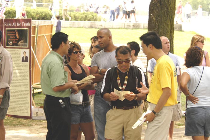 林肯纪念馆是著名的旅游景点,来自全美各地的游客如潮,观者无不震惊,许多人签名呼吁停止在中国对法轮功的迫害。当天就派送出至少5000份有关酷刑和法轮功真象传单。