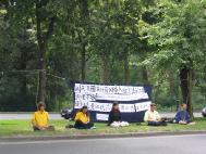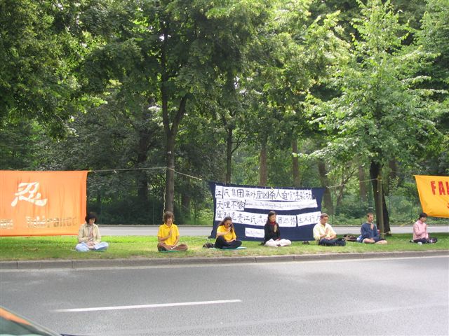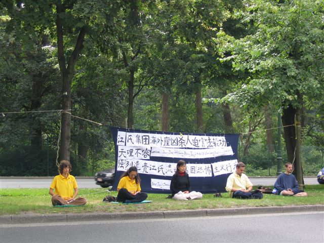 【明慧网2004年7月2日】在得知6月28日晚,江氏集团在南非雇用枪手企图杀害前去支持对到访的人权恶棍曾庆红和薄熙来起诉的法轮功学员后,比利时法轮功学员立即行动起来,30日上午,来到布鲁塞尔的中国领事馆前,强烈谴责江氏流氓集团的这种恐怖主义行为。前来中领馆办事的人,尤其绝大多数中国人惊闻这一事件后,纷纷接受我们带去的资料。