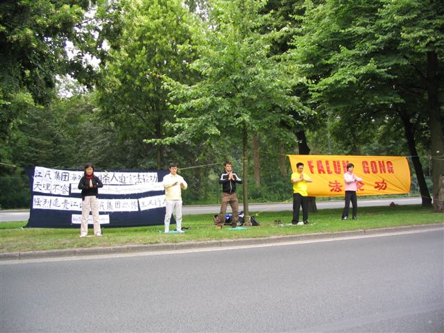比利时学员抗议江氏集团海外雇凶杀人(图)