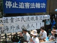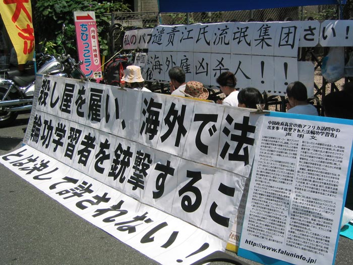 大阪的法轮功学员来到领馆前,通过发正念,发资料,强烈谴责江氏流氓集团的暗杀行为,呼吁制止江氏流氓集团将迫害法轮功及国家恐怖主义蔓延到海外,揭露江氏流氓集团的国家恐怖主义的手段无所不用的残暴。