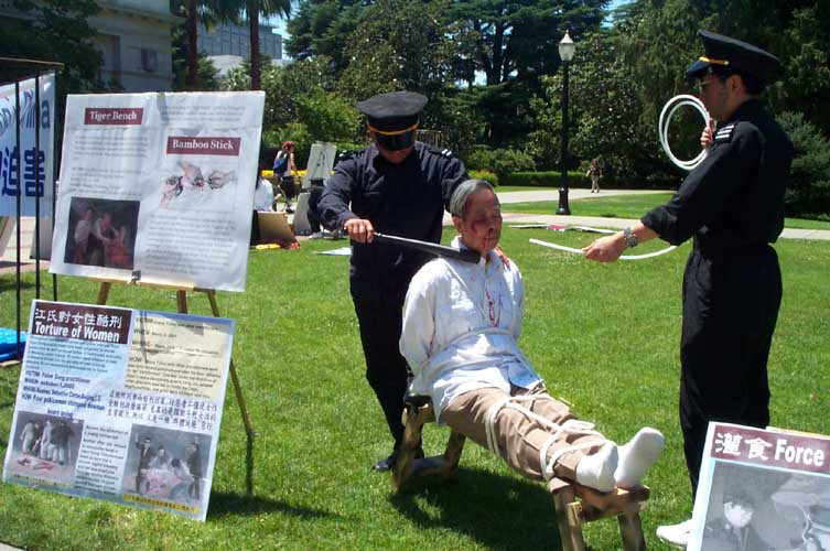 酷刑演示向人们揭示了在中国迫害法轮功学员所采取的一系列惨无人道的手段,强行劳工、铁笼、老虎凳、竹签刺手指、烫烙、强行灌食、吊打和紧束衣等等。然而,这只不过是种种酷刑表面的一点点。在中国大陆,法轮功学员所遭受的折磨却是极其残酷的。精神的摧残,更是令人难以想象。