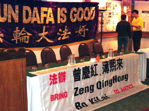 法轮功学员表示在中国的镇压导致近千名学员被证实遭凌虐死亡。海外法轮功学员这次前往南非是为了控诉曾庆红、薄熙来和呼吁停止迫害。