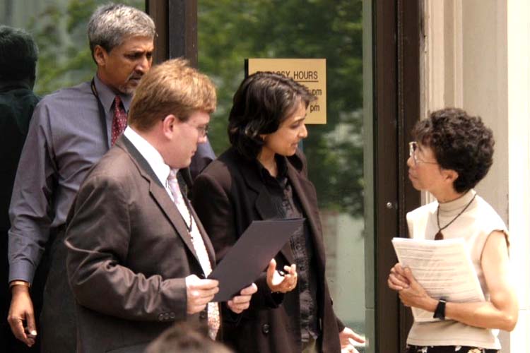 南非驻美大使馆公使Naidoo先生、南非大使馆联络部官员Odhav女士和Jordaan先生接见了法轮功学员代表。法轮功学员向三位使馆官员介绍了枪击事件始末,以及江泽民集团对法轮功学员灭绝人性的镇压,并把法轮功的一整套真象资料递交给南非使馆。
