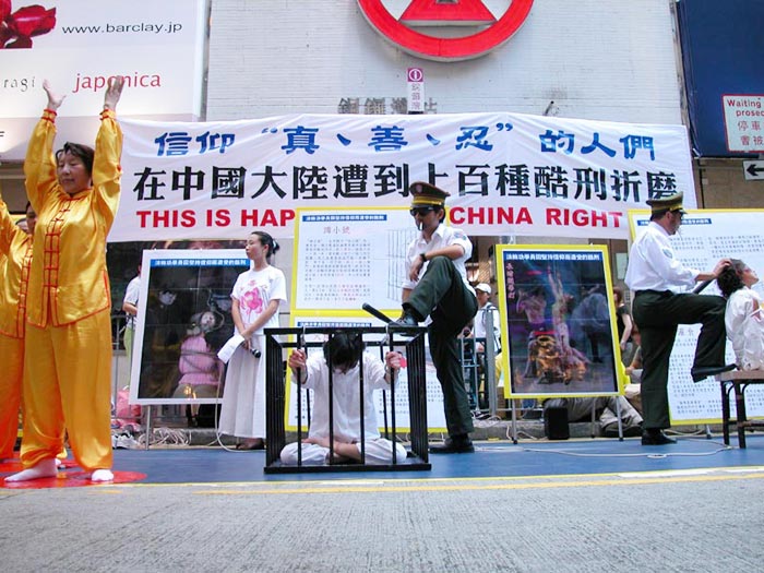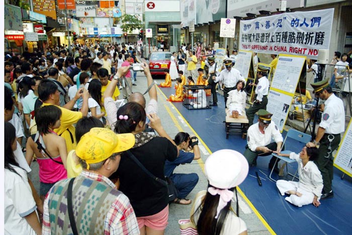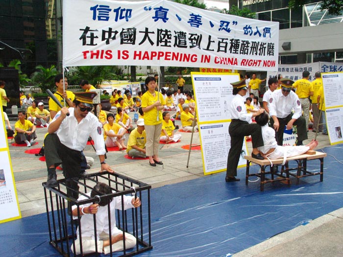 图片报道:香港学员举行游行及模拟酷刑展 呼吁结束江氏集团五年恐怖迫害