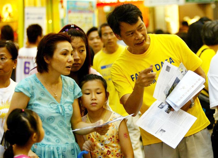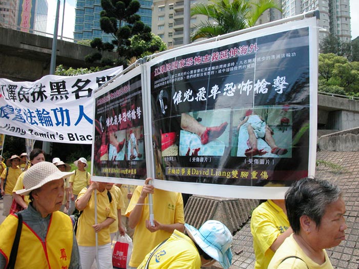万人观看游行请愿 酷刑展揭露江氏镇压迫害5周年(图)